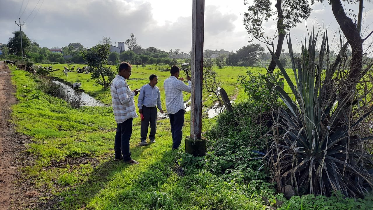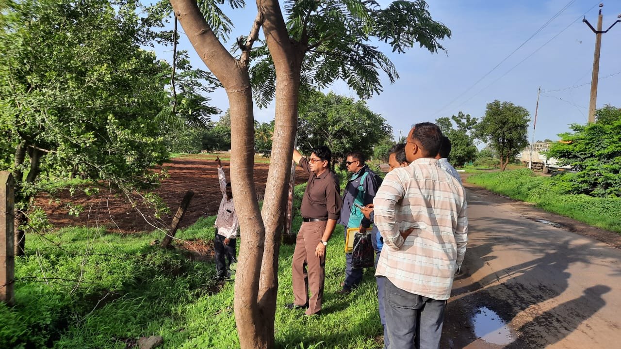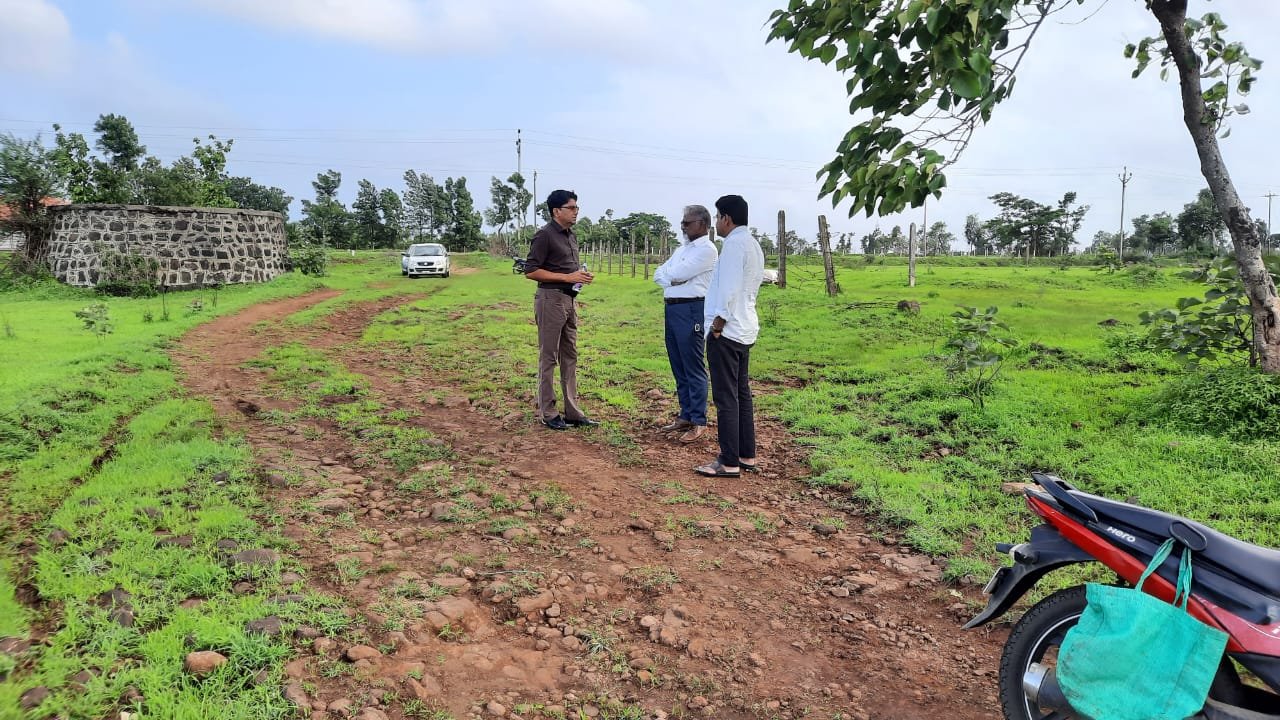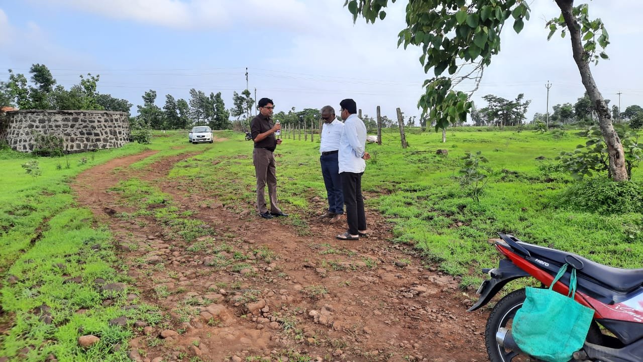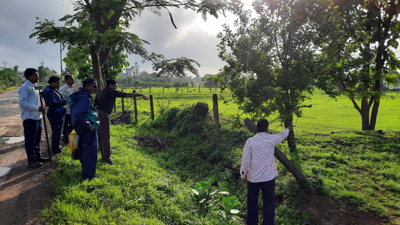 A team of officials is seen conducting a detailed land survey and site inspection to assess the boundaries and terrain. The collaborative field visit ensures accuracy and transparency in the land development process.
